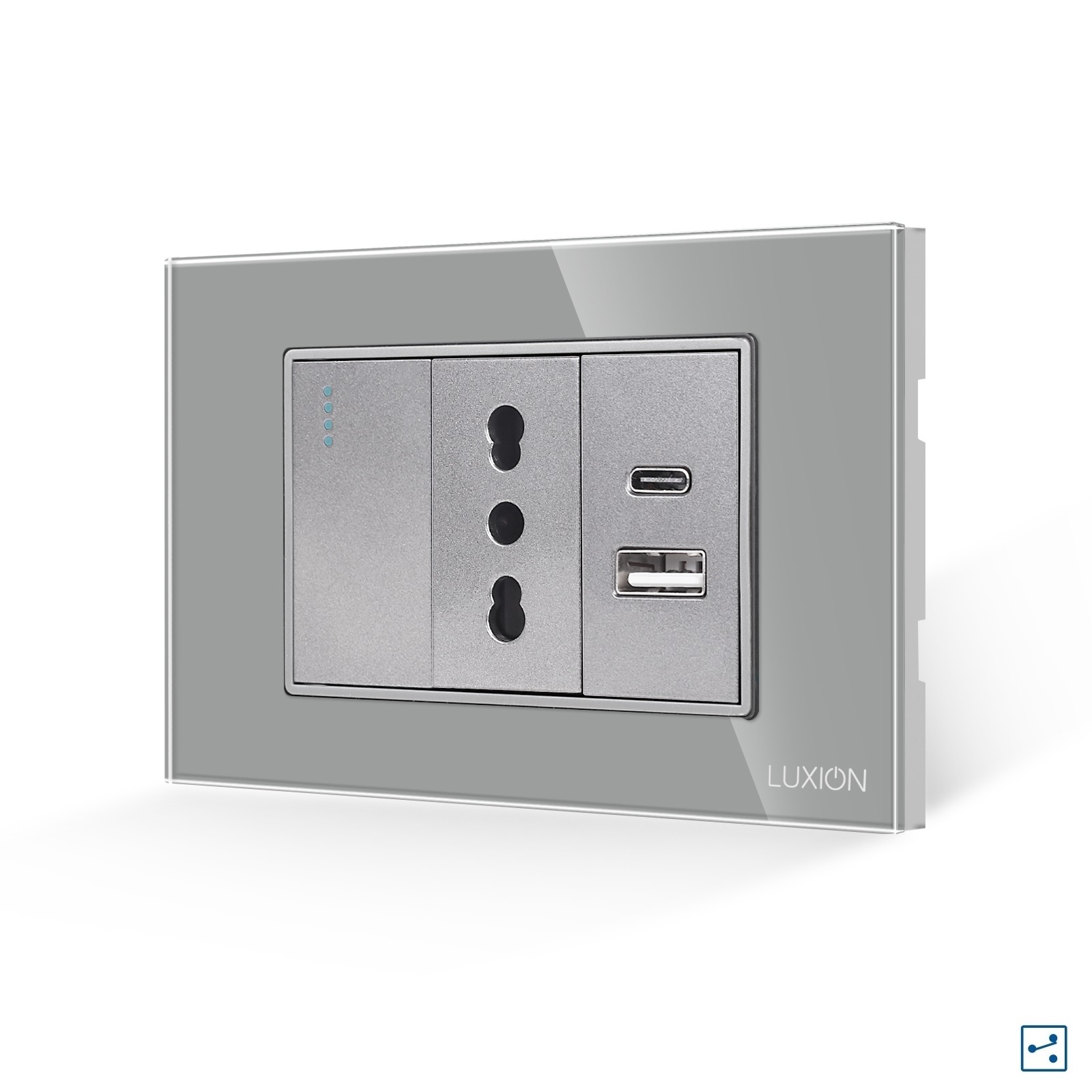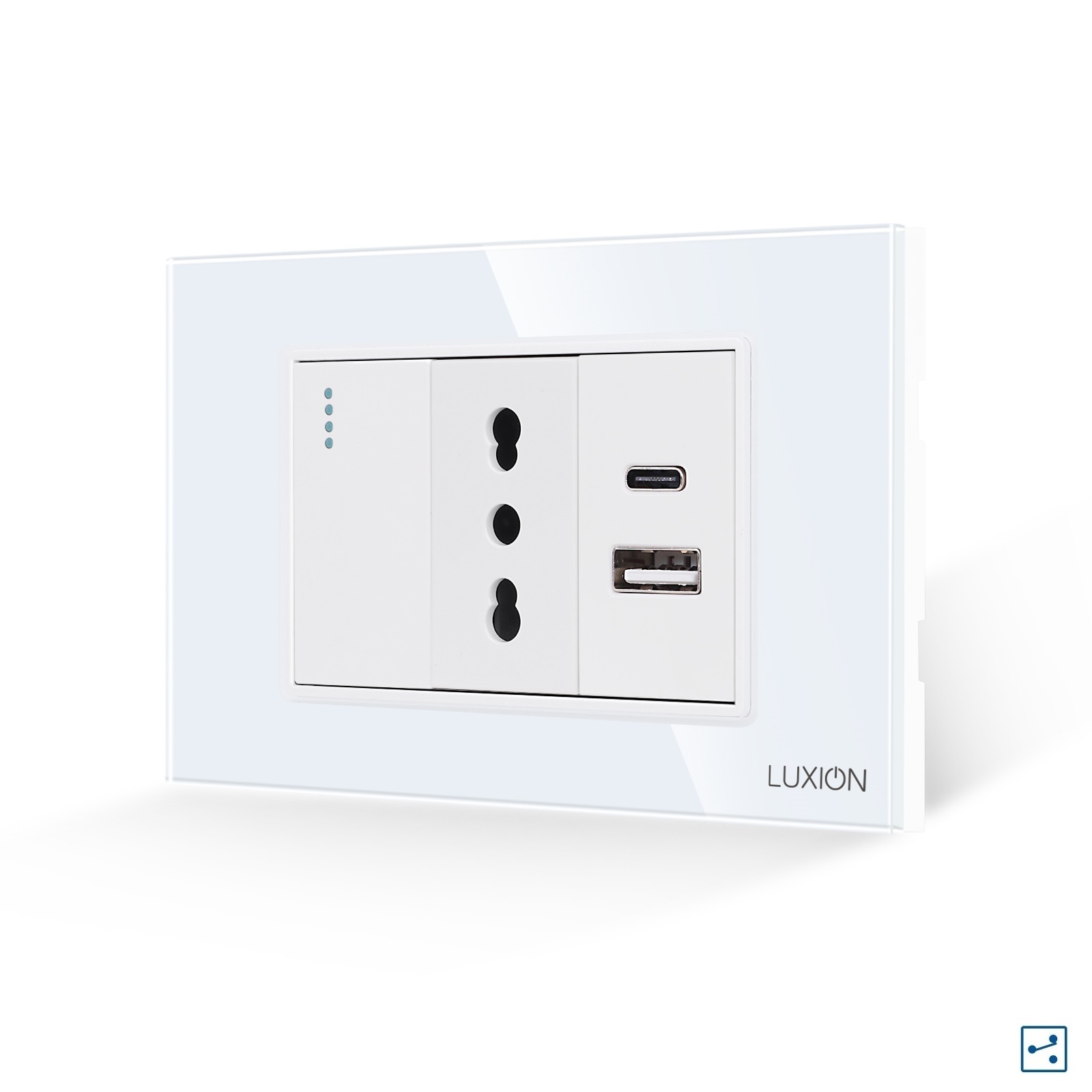 Intrerupator simplu cap scara cu priza ingusta si USB A+C LUXION cu rama din sticla, standard italian, 3M - solutia ideala pentru casa sau spatiul tau. Bucura-te de un design rafinat si functional, cu atentie la detalii. LUXION se integreaza perfect in orice mediu. Astfel poate fi montat nu doar in casa, ci si in spatii precum: birouri si spatii comerciale, spatii HoReCa, showroom-uri si sali de prezentare, depozite si spatii industriale moderne, cladiri rezidentiale sau de birouri.