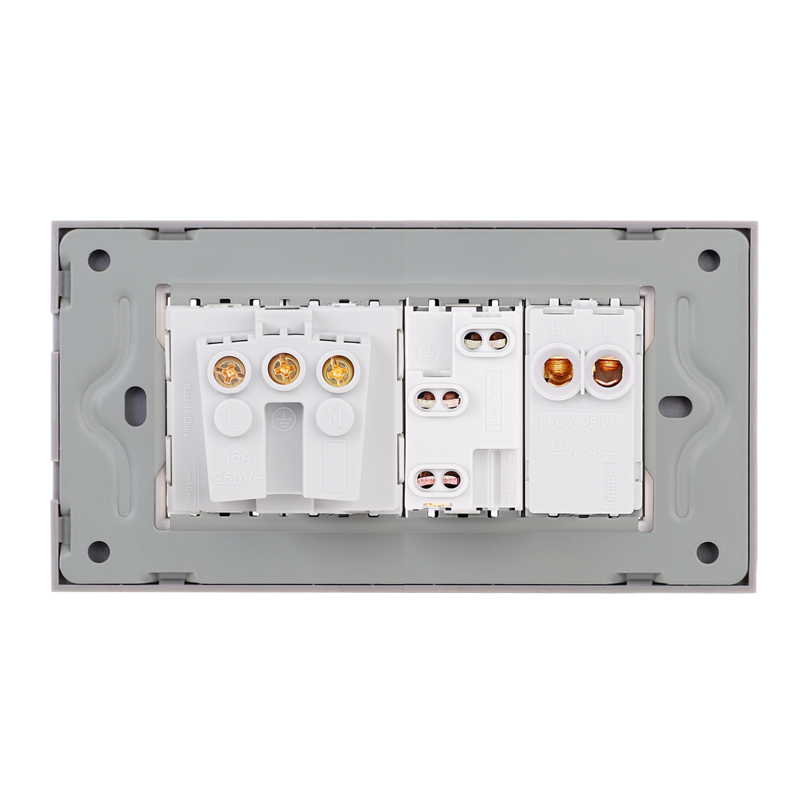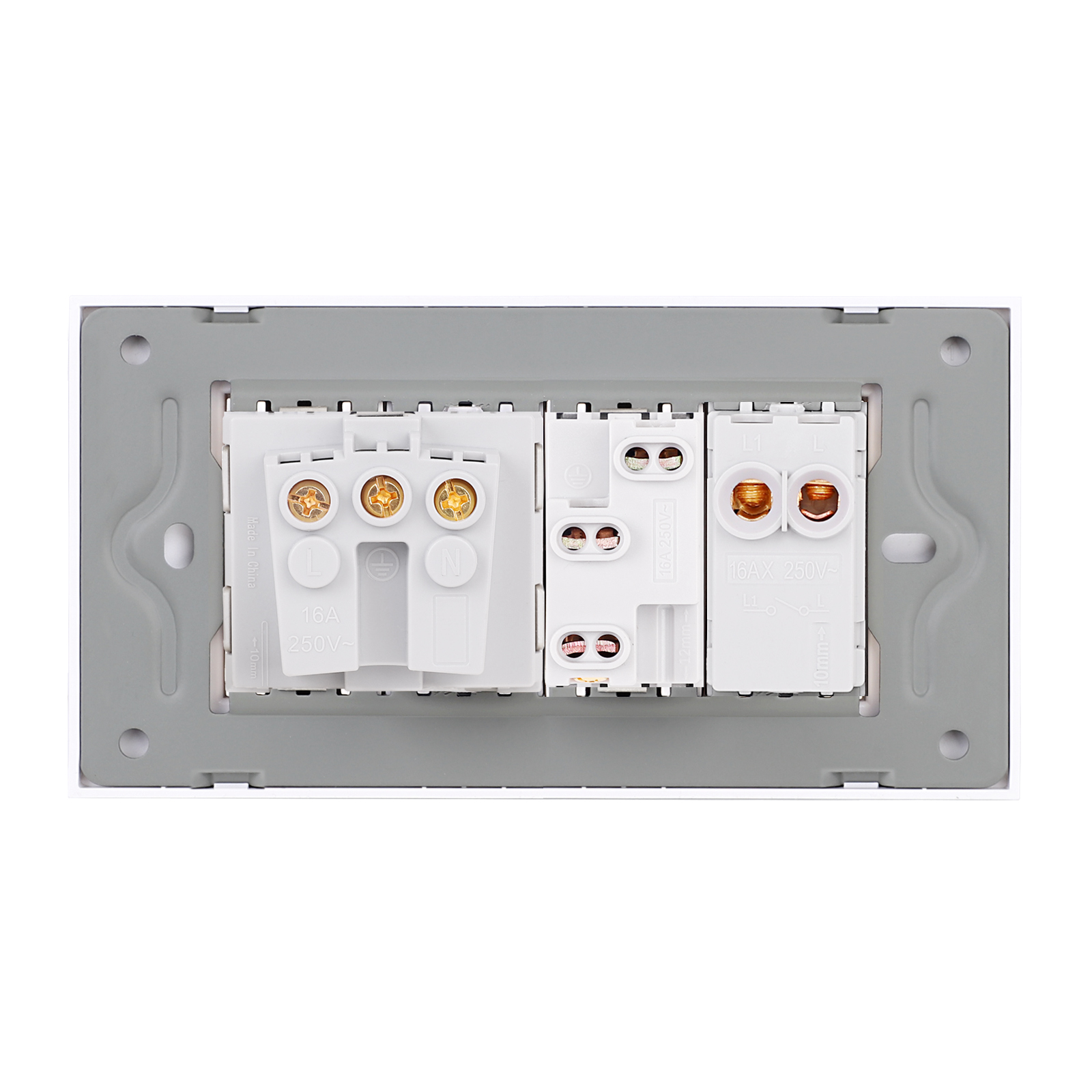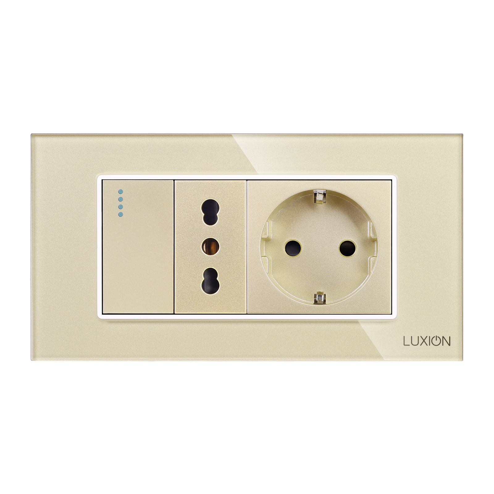 Intrerupator simplu + priza ingusta + priza schuko cu rama din sticla Luxion, standard Italian, 4M - solutia ideala pentru casa sau spatiul tau. Bucura-te de un design rafinat si functional, cu atentie la detalii. LUXION se integreaza perfect in orice mediu. Astfel poate fi montat nu doar in casa, ci si in spatii precum: birouri si spatii comerciale, spatii HoReCa, showroom-uri si sali de prezentare, depozite si spatii industriale moderne, cladiri rezidentiale sau de birouri.