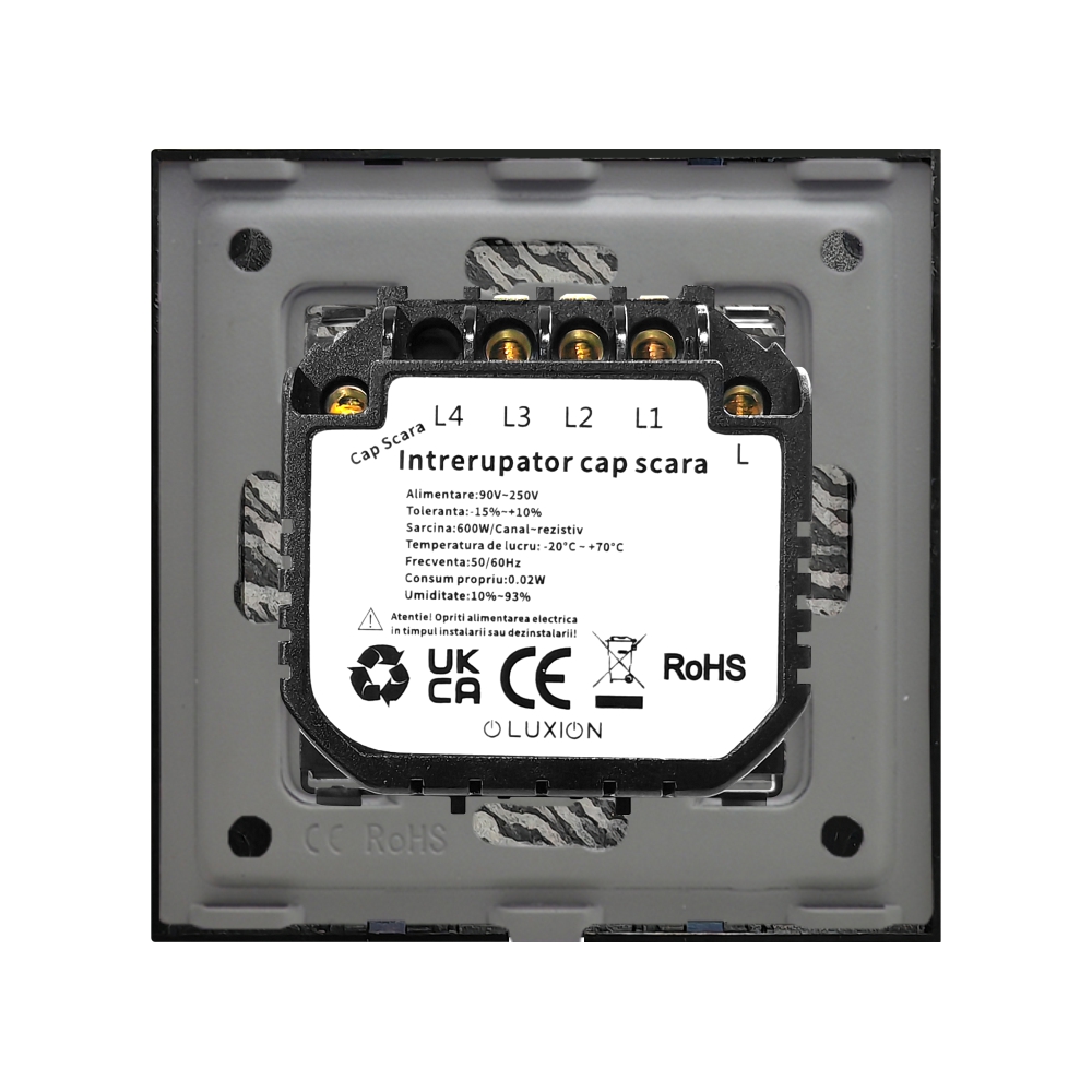 Intrerupator triplu cap scara / cruce cu touch din marmura LUXION, compatibil doar cu modulele LUXION. Se remarca prin design premium, elegant si minimalist. Acest model, realizat din marmura naturala, aduce un plus de rafinament si exclusivitate, fiind ideal pentru interioare moderne, spatii rezidentiale de lux, hoteluri sau birouri premium. Fabricat din materiale de calitate, rezistent si practic, ofera utilitate si confort, completand perfect un decor sofisticat.