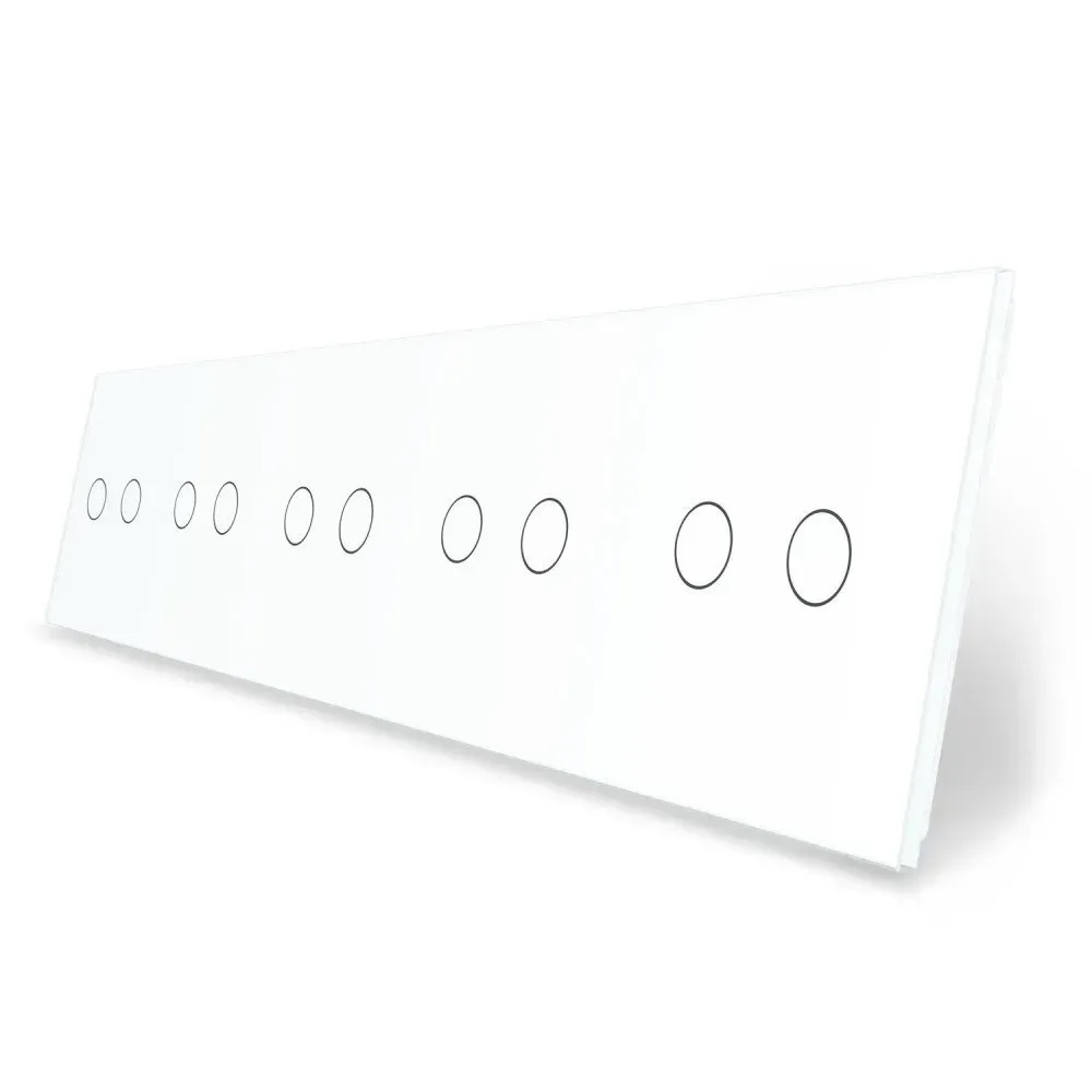 Panou 5 intrerupatoare duble din sticla Livolo fabricat din materiale premium, rezistente la zgarieturi si umiditate, mereu va arata ca nou. Produsul reprezinta panoul frontal pe care se monteaza intrerupatoare simple, cap scara, wireless, cu variator, timer.