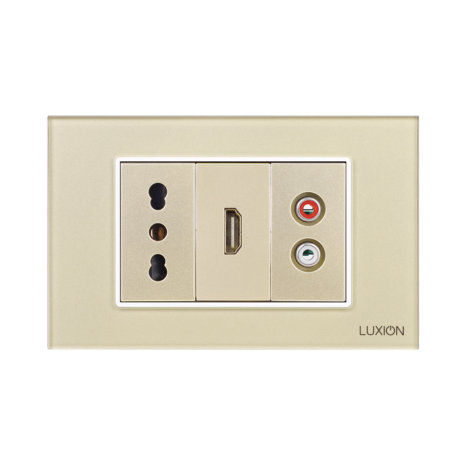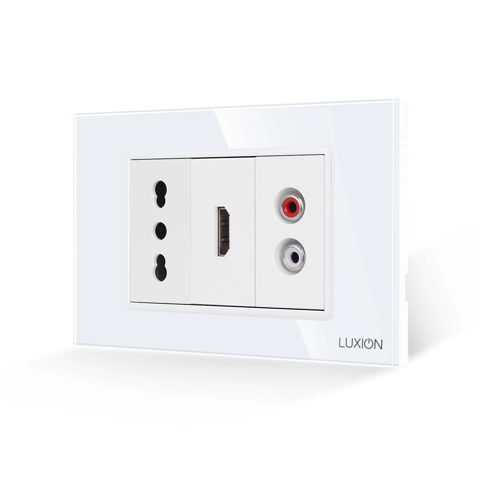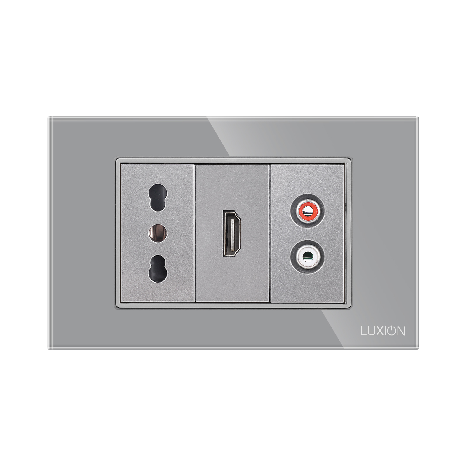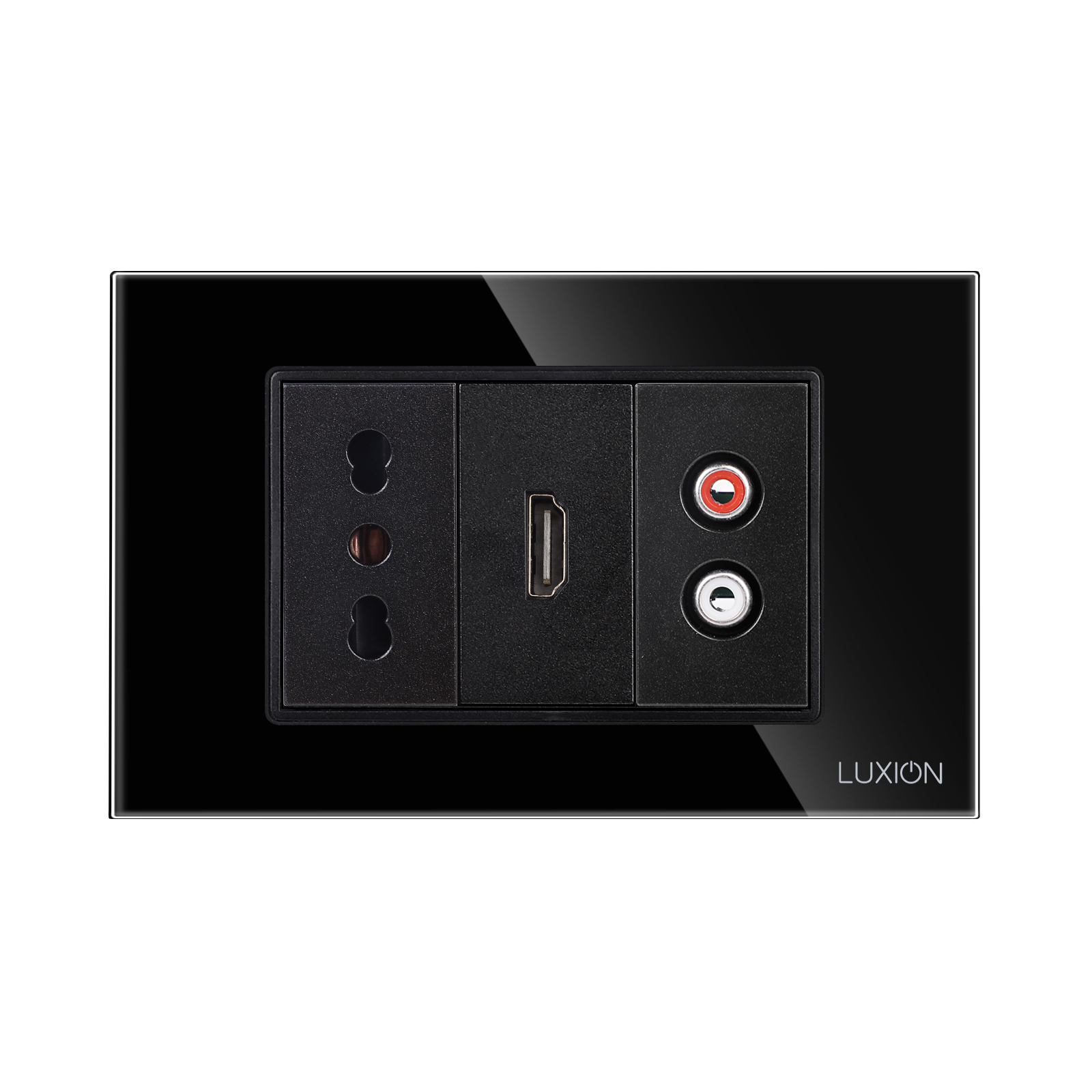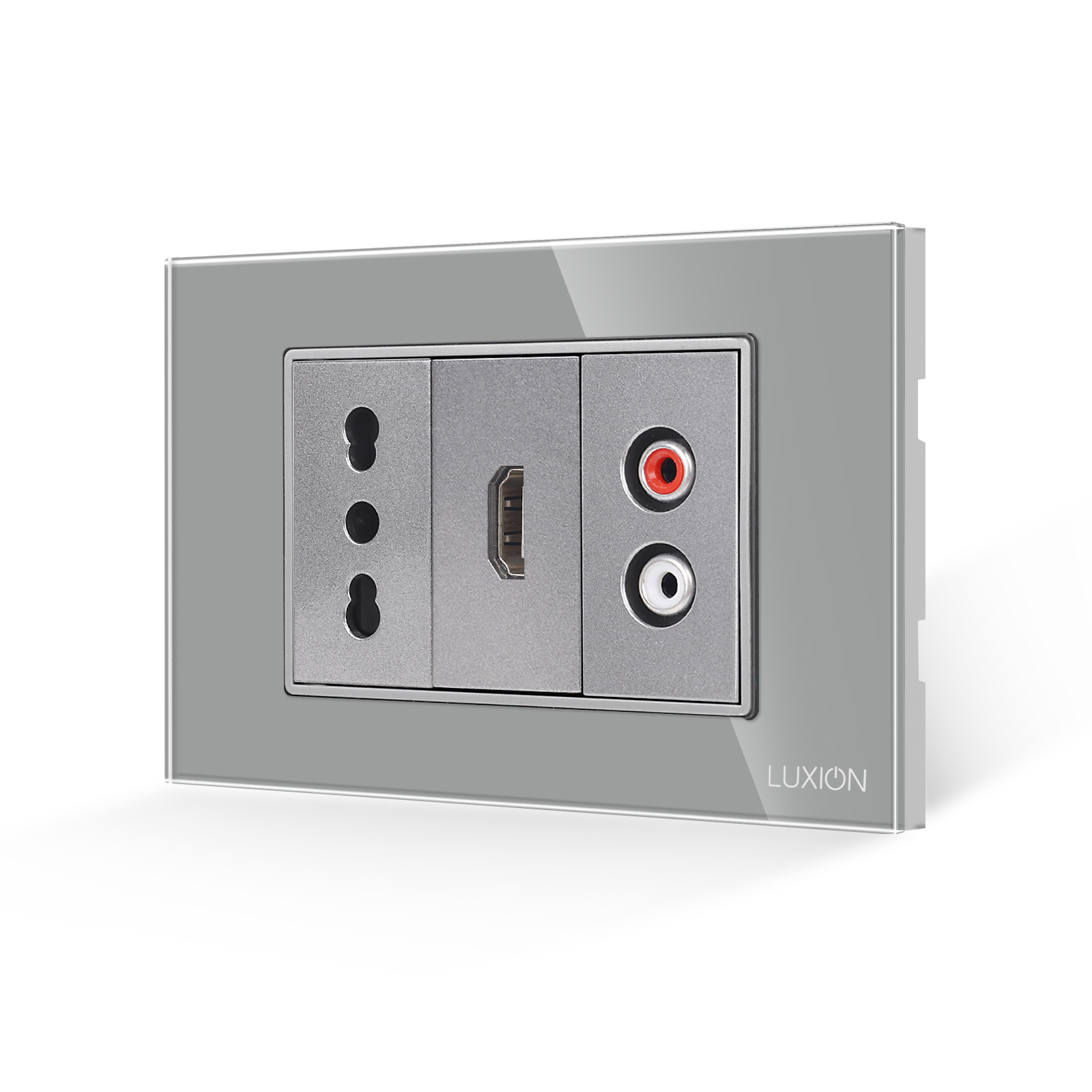 Priza ingusta + HDMI + audio LUXION cu rama din sticla, standard italian, 3M - solutia ideala pentru casa sau spatiul tau. Bucura-te de un design rafinat si functional, cu atentie la detalii. LUXION se integreaza perfect in orice mediu. Astfel poate fi montat nu doar in casa, ci si in spatii precum: birouri si spatii comerciale, spatii HoReCa, showroom-uri si sali de prezentare, depozite si spatii industriale moderne, cladiri rezidentiale sau de birouri.
