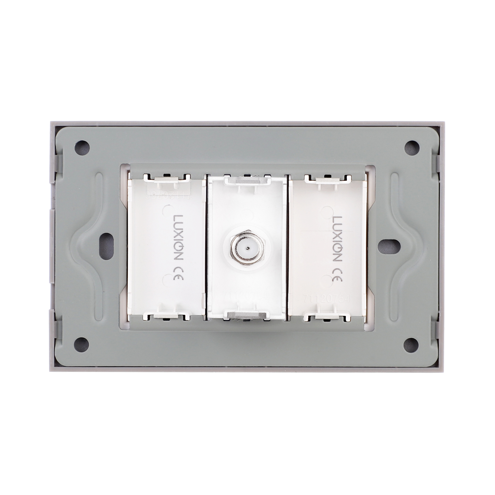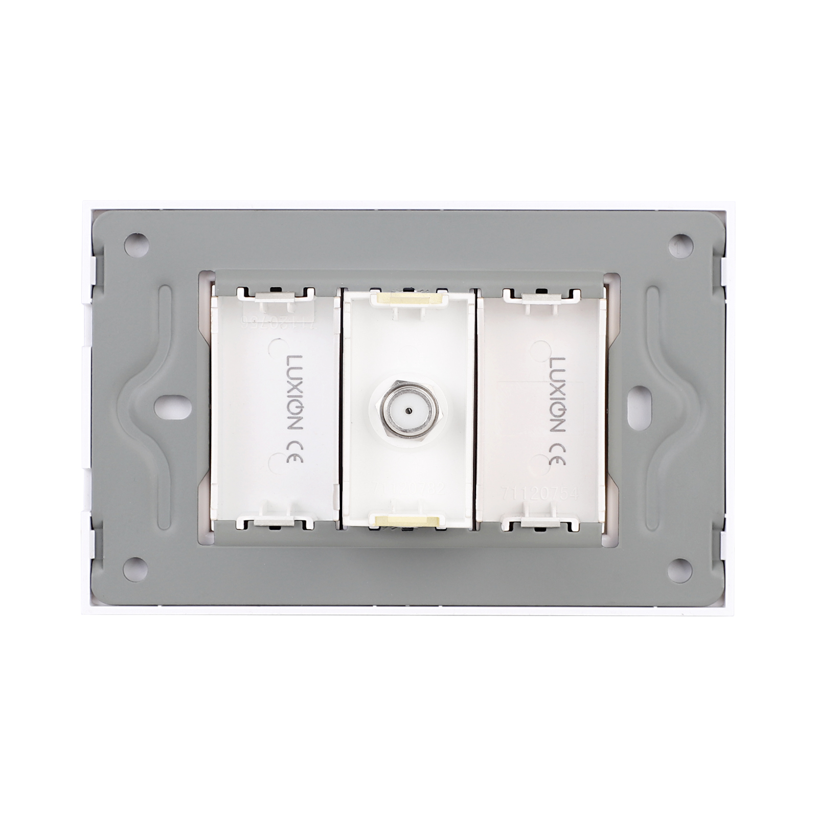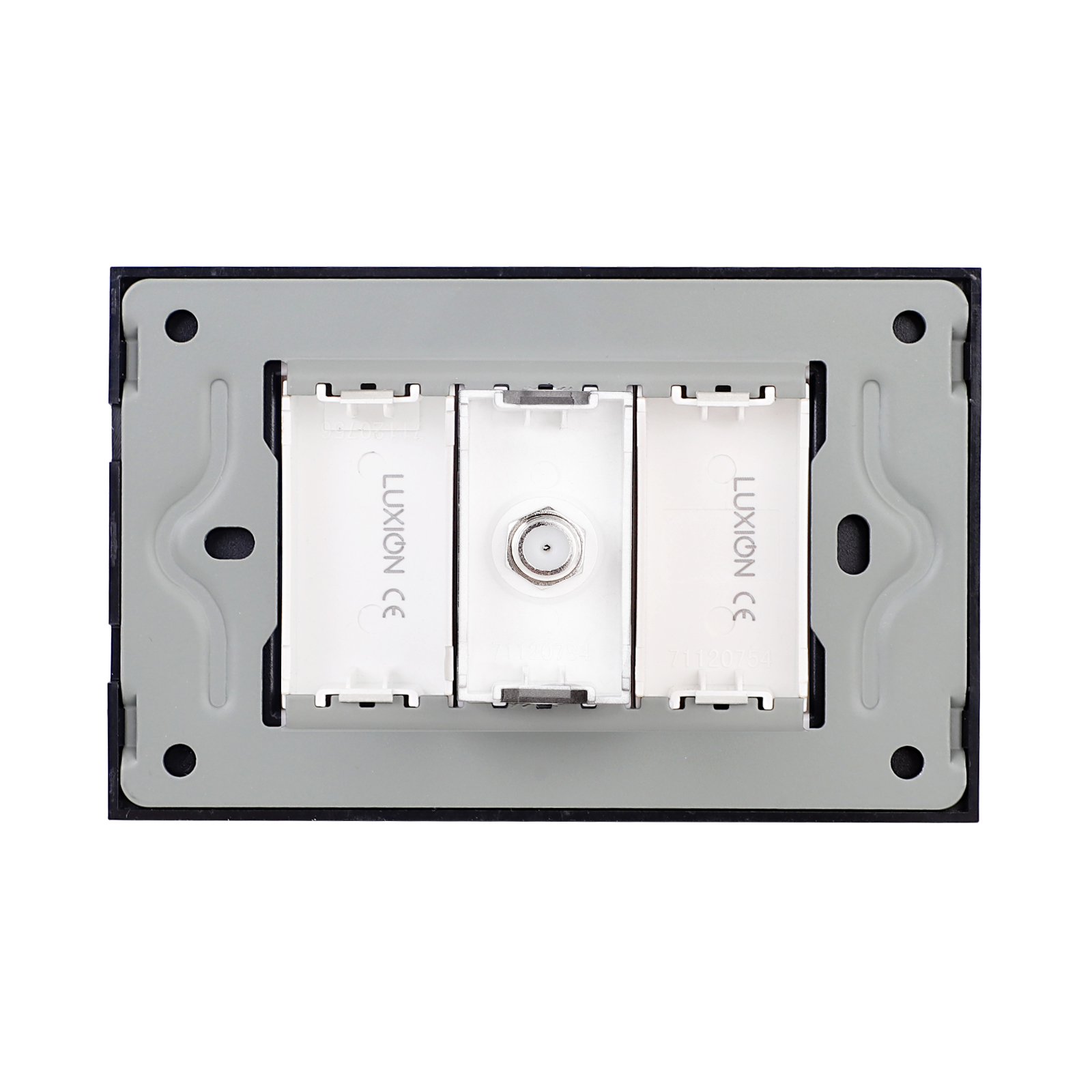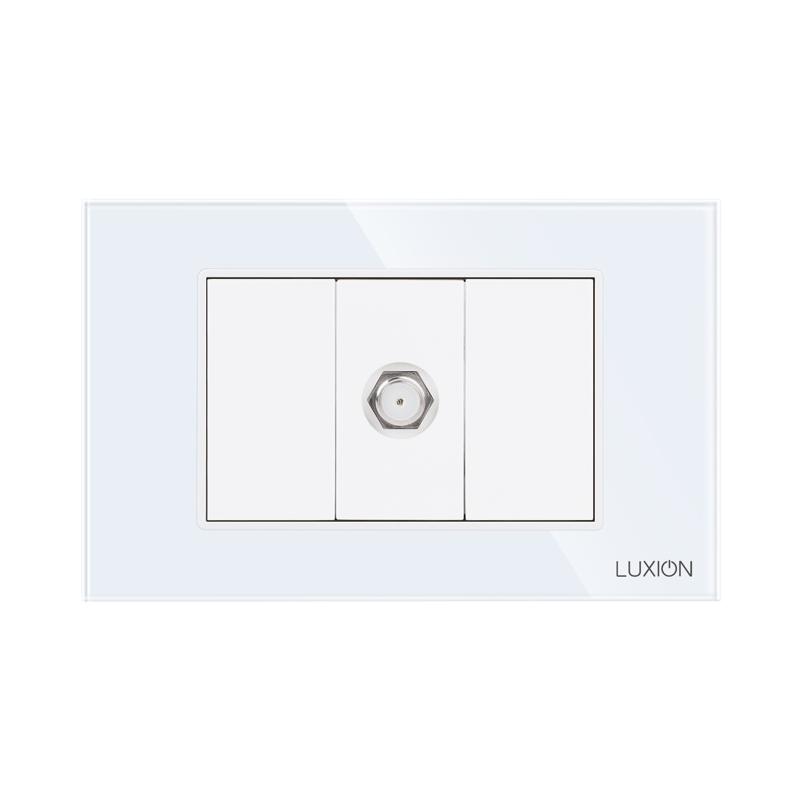 Priza TV satelit 1M si 2 taste false LUXION cu rama din sticla, standard italian, 3M - solutia ideala pentru casa sau spatiul tau. Bucura-te de un design rafinat si functional, cu atentie la detalii. LUXION se integreaza perfect in orice mediu. Astfel poate fi montat nu doar in casa, ci si in spatii precum: birouri si spatii comerciale, spatii HoReCa, showroom-uri si sali de prezentare, depozite si spatii industriale moderne, cladiri rezidentiale sau de birouri.