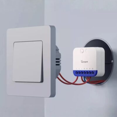 Releul inteligent Sonoff Mini-Dim este o solutie compacta si eficienta pentru transformarea iluminatului clasic intr-un sistem smart. Datorita dimensiunilor reduse, se monteaza usor in spatele intrerupatorului existent, pastrand controlul manual obisnuit. Suporta reglarea fina a luminozitatii si este compatibil cu platforme moderne precum Apple Home, Google Home sau Alexa prin protocol Matter.