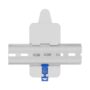Suportul este construit din ABS V0, un material rezistent la foc, asigurand utilizare sigura in orice instalatie. Este prevazut cu o clema albastra care permite fixarea si detasarea usoara de pe sina DIN, fara efort si fara unelte speciale. In pachet sunt incluse patru suruburi M3 pentru prinderea solidara a releului pe suport.